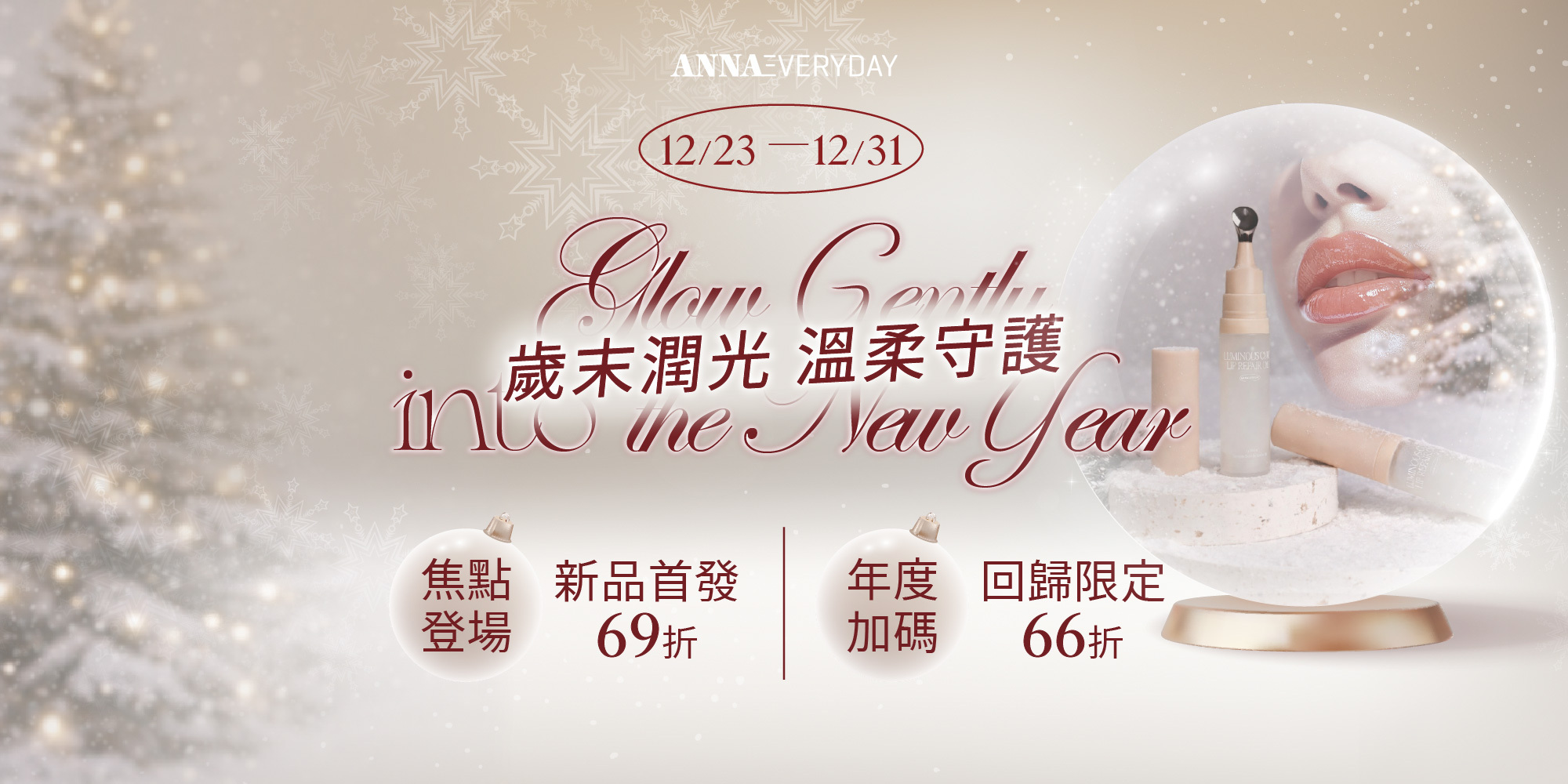 2025.12.23~12.31於指定貼文留言且完成指定動作即有機會獲得ANNAEVERYDAY年末新品「豐漾美唇油」。