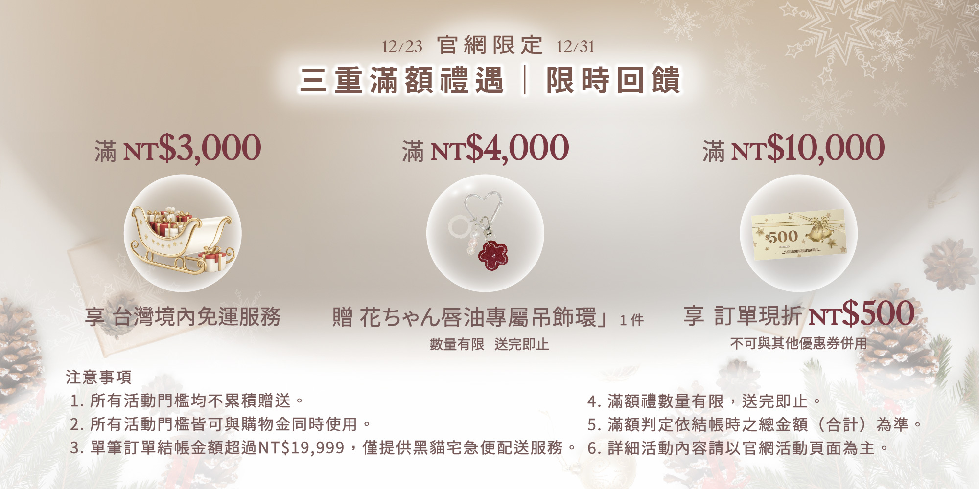3. 所有活動門檻均不累積贈送,以單筆結帳金額(合計)為準。