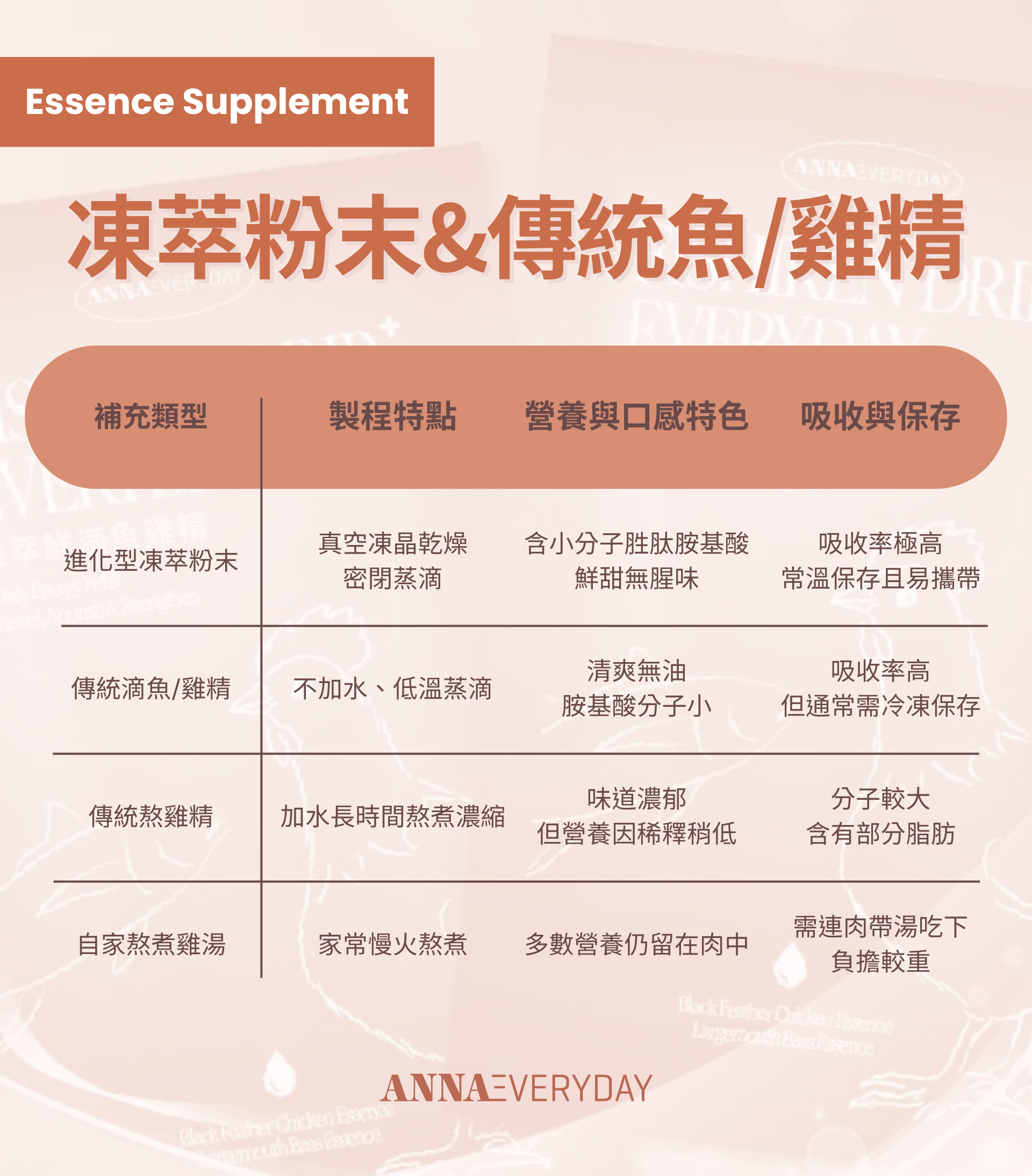 但市面上產品琳瑯滿目,有分滴雞精及滴魚精,價格從親民到高端,該如何挑選才能真正為自己和家人加分?要喝哪一種比較合適?選魚還是選雞?滴雞精和雞精一樣嗎?自家熬煮的雞湯不能取代滴雞精嗎?怎傳統加熱與新型態技術又有什麼差別?