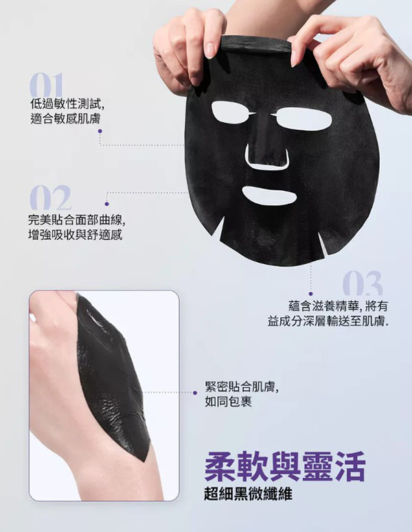 採用超透氣的竹炭黑面膜