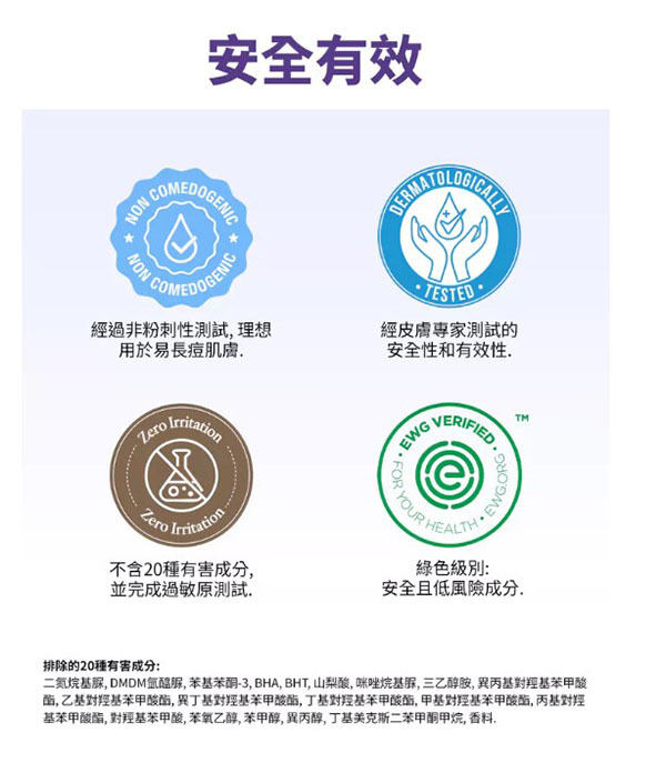 不含致痘成分,油痘肌也不用擔心會遇到爆痘的問題喔😌